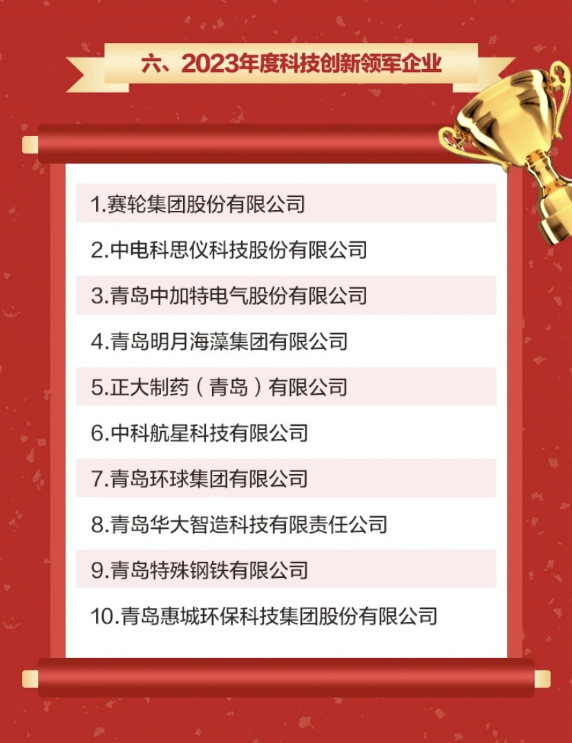 惠城環(huán)保榮獲青島西海岸新區(qū)2023年度科技創(chuàng)新領(lǐng)軍企業(yè)